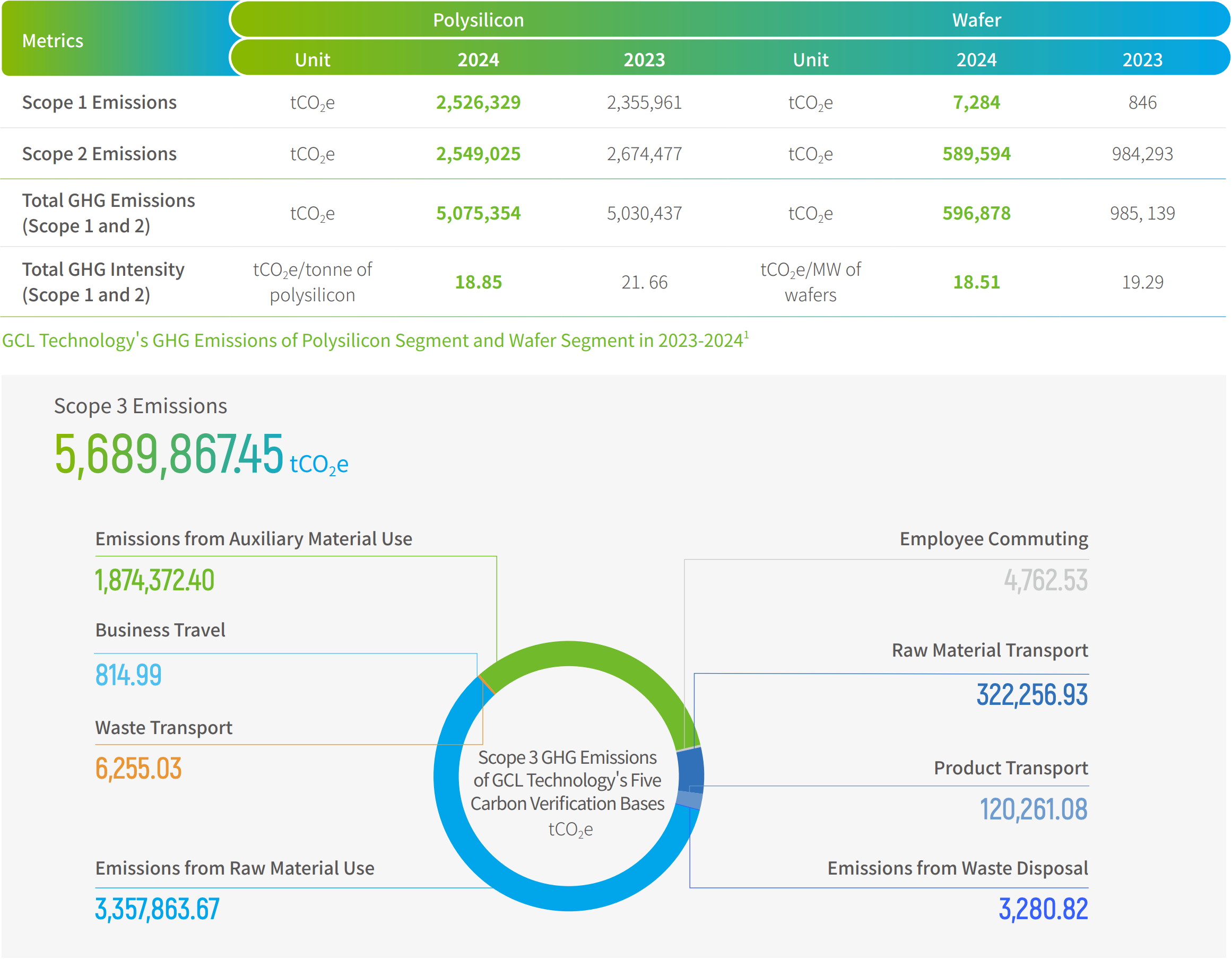 In 2024, the Group continued to carry out third-party verification of Scope 1, 2, and 3 GHG emissions for five bases, includingJiangsu Zhongneng, Xuzhou Photovoltaic, Leshan GCL, Inner Mongolia Xinyuan, and Inner Mongolia Xinhuan. Moving forward, theGroup will place greater emphasis on Scope 3 emissions management by tracing carbon footprints across the supply chain andcollaborating on emission reduction at key stages, aiming to build a low-carbon ecosystem that spans the entire value chain.